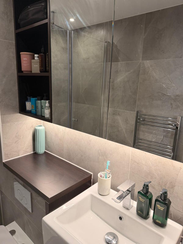 Everything in the flat is new, modern and top quality — from the heated flooring to the excellent power shower that makes every morning feel like a spa moment.