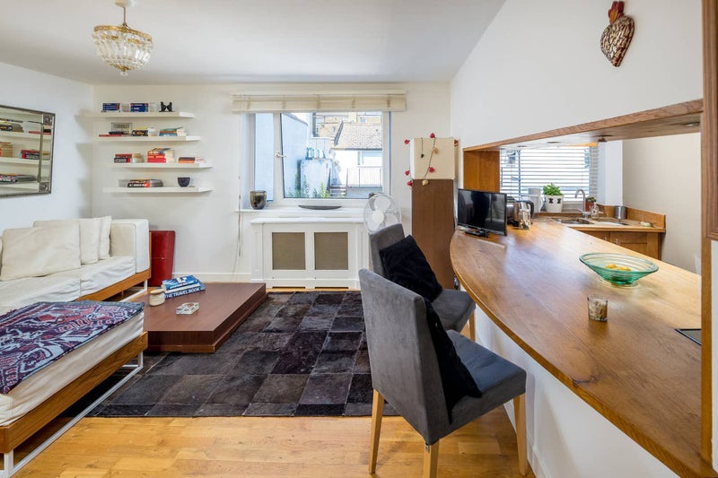 A spacious and bright one bedroom flat in a little private mews, with private (free) parking space in the yard, ideal location for a couple or a single professional.