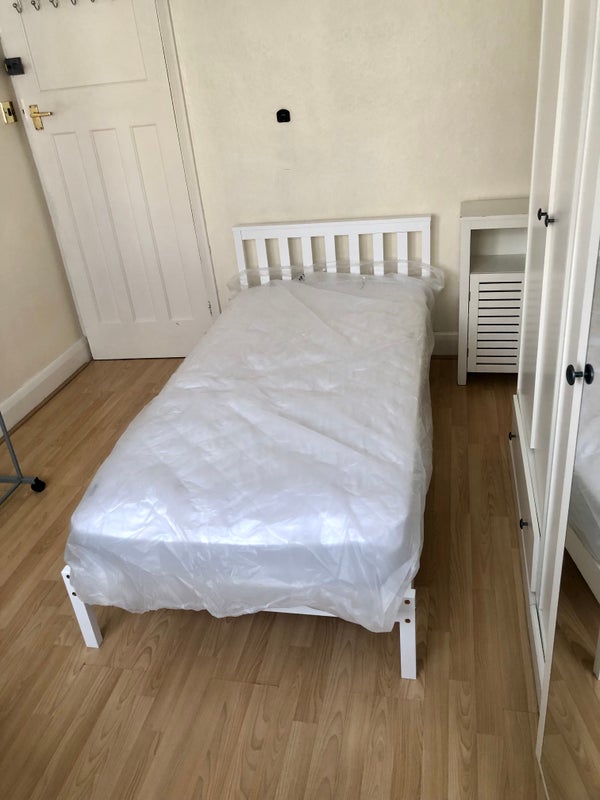 Bright and clean. New single bed, mattress and topper in a quiet and bright street close to Kensal Rise Queen’s Park and 10-12 min to Willesden Green tube station. Tenant can have use of garden and living room.