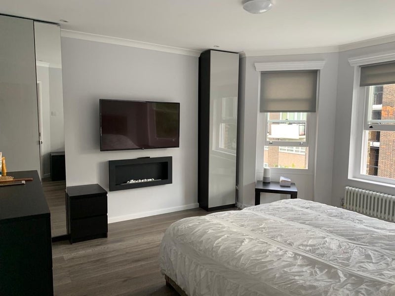 A contemporary, very clean and quiet apartment in a classically modern new refurbishment. A stone's throw from West Kensington Station in the prestigious area of West Kensington and Barons Court. Completely redecorated and fully furnished the Apartment has the look and feel of a private hotel within the prestigious West Ken Mansions Victorian Development, providing one bedroom en-suites, suitable for single professionals or couples. On the second floor. Couples also considered with a requirement for minor price adjustment.