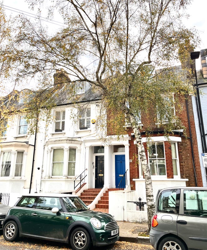 Both bedrooms are spacious doubles, furnished with cozy bedding and ample storage. The flat also includes a modern bathroom, and access to a private rear garden — a rare luxury in London, perfect for morning breakfasts or evening drinks.