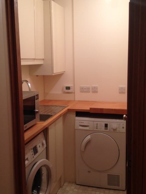 Beautiful 1 bed flat in W14, near Brook Green. The flat is the whole lower ground floor of a recently refurbished house. There is a large lounge with doors opening outside, a double bedroom with built in wardrobes, bathroom and utility room with oven, microwave, washing machine, tumble dryer, electric hob etc. The flat has wooden floors and underfloor heating throughout. Entrance to the flat is through the main front door of the house. This access point will be shared with one other person, but apart from that, the flat is self contained. Female professional tenant required (no couples). All bills (gas, electricity, water, council tax, internet access, tv licence etc.) are included. Great transport links: the flat is within a ten minute walk of Hammersmith station (Piccadilly and District Line), Shepherds Bush station (Central line), Kensington Olympia (the mainline), the Hammersmith and City line and the Overground at Shepherds Bush. It is a 5 minute walk to tennis courts, the farmer's market and the supermarket, a 10 minute walk to High Street Kensington and a 15 minute walk to Holland Park and Notting Hill. Fantastic local pubs (The Havelock and The Bird in the Hand) are within 5 minutes walk.