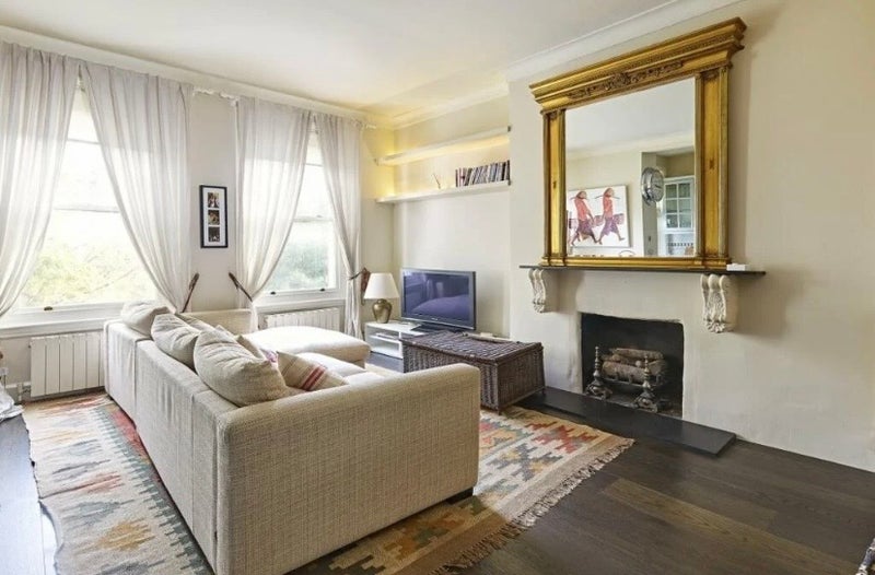 Set on the second floor of a handsome period building, the flat features a spacious open-plan reception with dark wood floors, high ceilings, a striking feature functional fireplace that adds warmth and character, and large sash windows that flood the space with natural light. The fitted kitchen and breakfast bar is ideal for everyday living, while the bright bedroom boasts ample built-in storage and a luxurious en-suite bathroom.