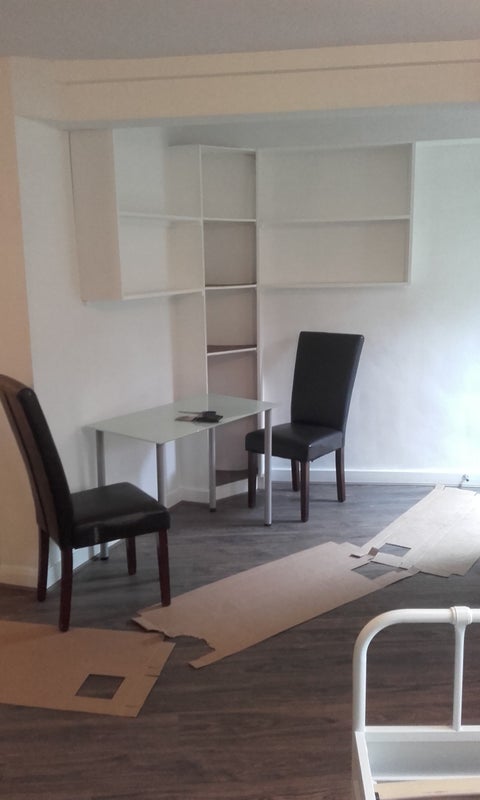 Within a 1 minute walk of Kentish Town Tube, a peacefully situated large studio flat. Separate fitted kitchen with hob/oven fridge/freezer and WM.