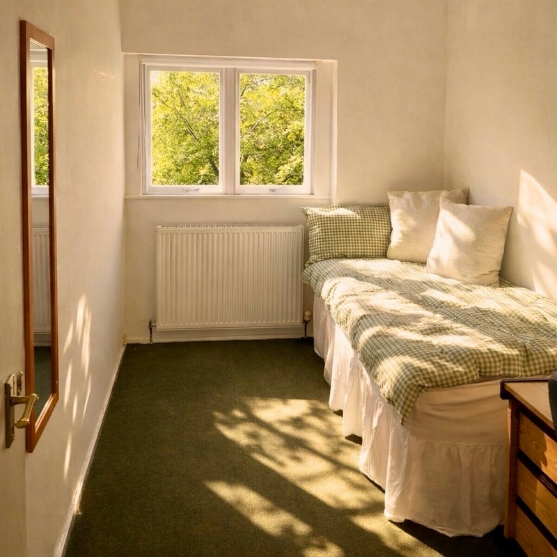 The room that is available is front facing, bright, quiet and gets the sun through the windows in the afternoon. It has a desk area with book shelves, a chair, bed with draws underneath and a wardrobe. The rent includes all bills and fast Fibre Optic Broadband.