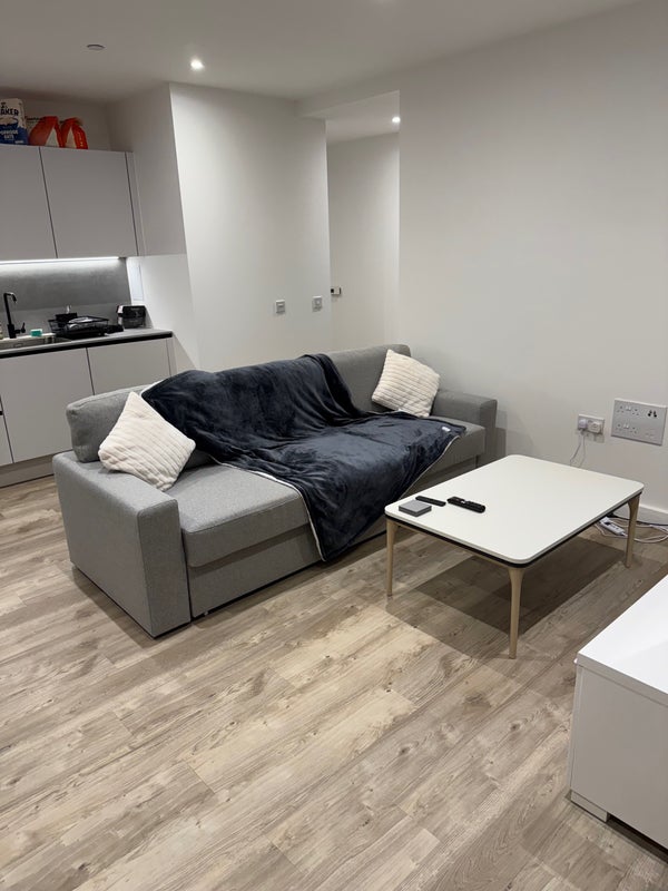 The flat is clean, modern, and located in a secure development.