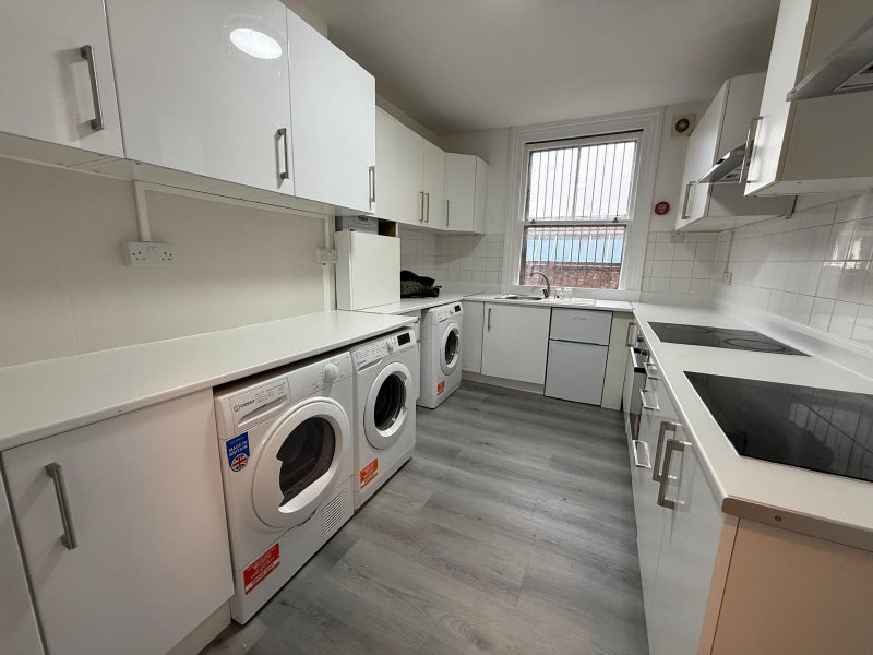 Flat consists of 4 bathrooms and 2 kitchens with multiple washing facilities.