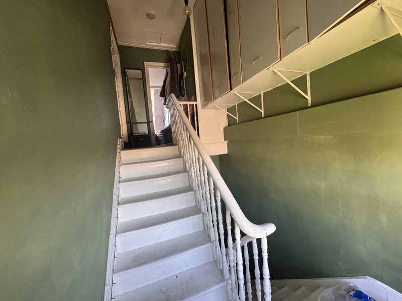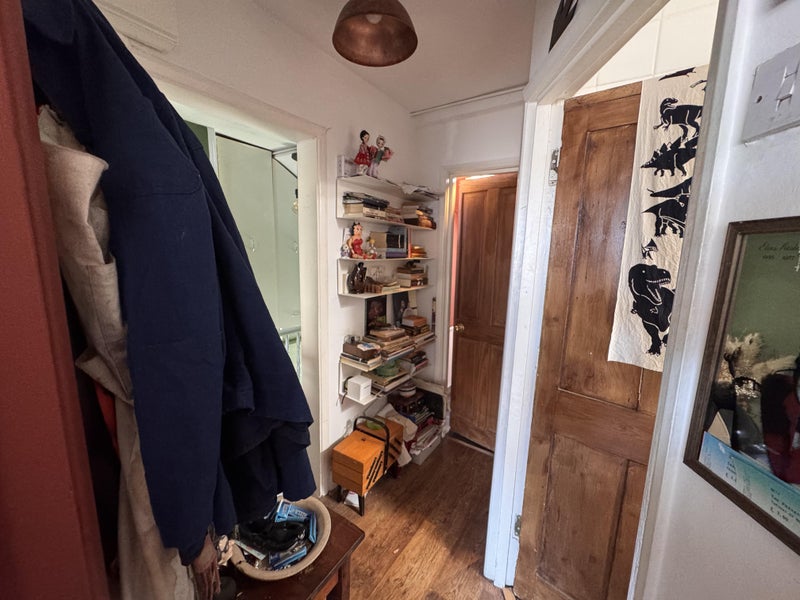 The flat features a separate kitchen with a gas hob, a comfortable living space, and excellent additional storage, including built-in space over the stairs.