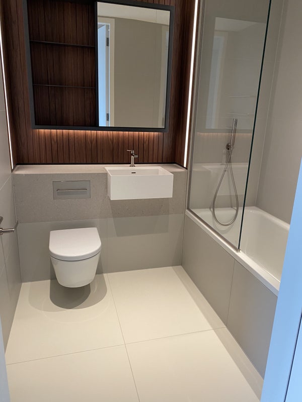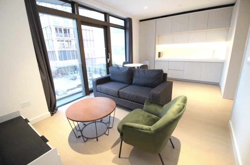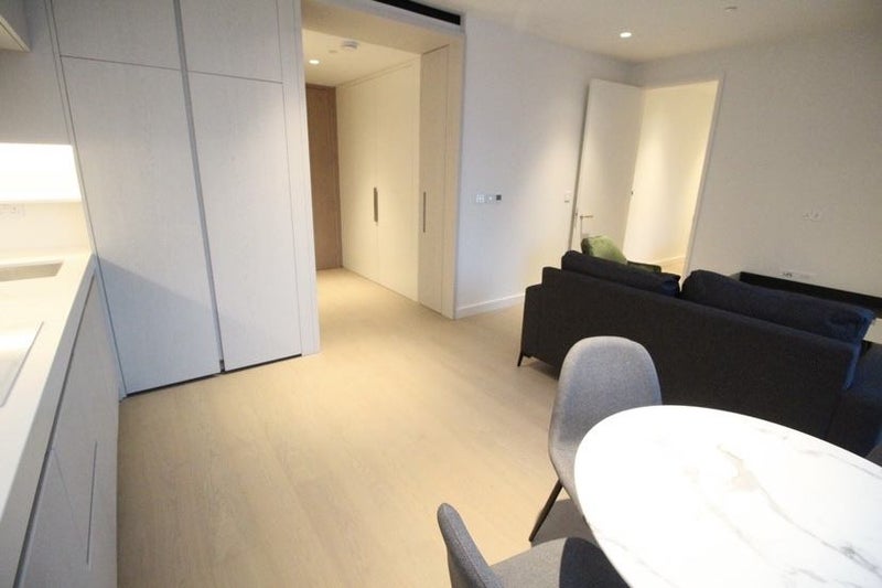 This stunning and just recently completed 1 - bed flat offers a spacious open-plan kitchen and living area with generous floor to ceiling heights. The kitchen is fully equipped with all integrated Siemens appliances, including four zone induction hob, dishwasher, microwave, oven, and fridge/freezer. It has a white quartz worktop.