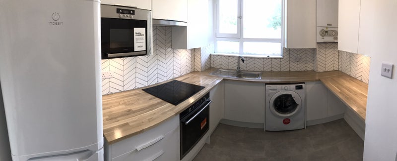 There is a beautiful spacious kitchen with new appliances (large fridge-freezer, washing machine, induction hob, oven, fitted wall units, oak kitchen counter and a breakfast bar). Due to its size, the kitchen is a fantastic place to socialize. The bathroom has an unusually large shower, sink with vanity unit, ample of storage and there is also a separate toilet.