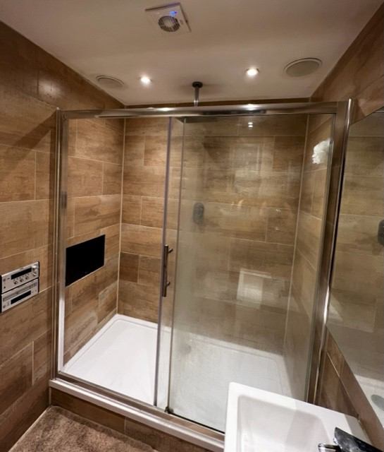 - Lovely wall to wall shower with built-in Bose ceiling speakers