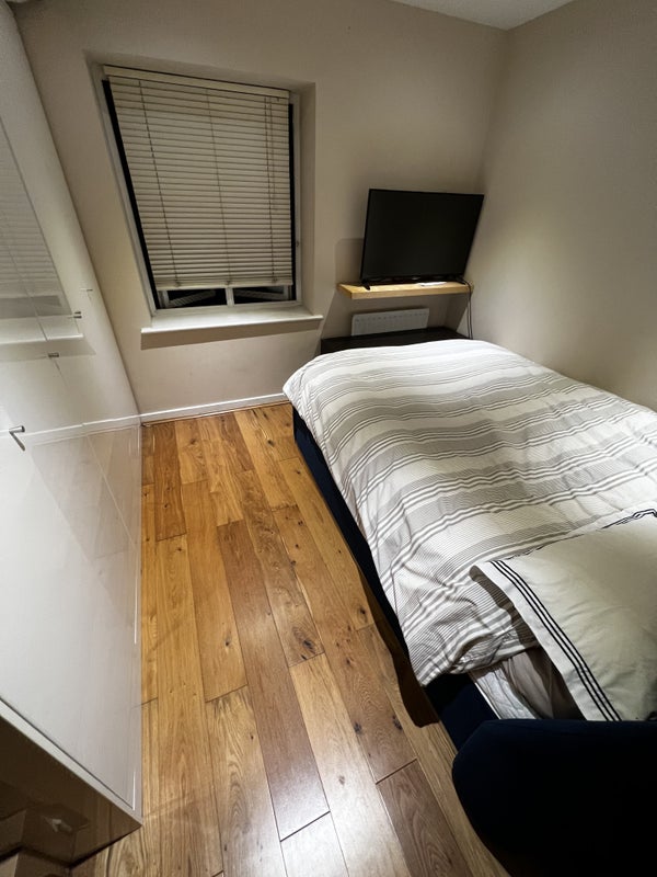 1 Double bedroom to let in our 2 bed apartment, 5 minute walk to Kings Cross / St Pancras Station. Comes with TV and wall to wall storage. Great for working professionals in and around the city.