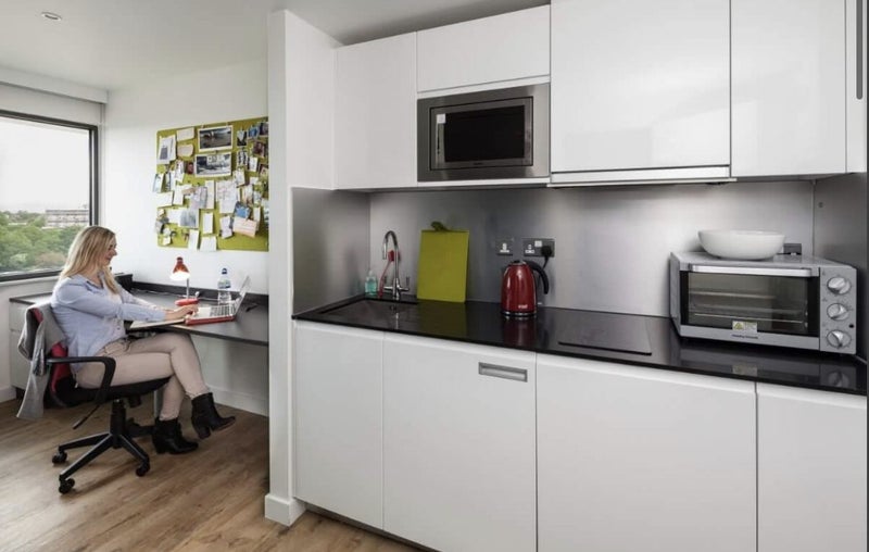 Amazing common areas including social space and study rooms. 24hr reception, up to date facilities, fast wifi, and bicycle storage
