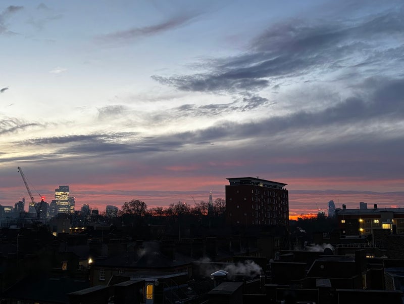 Semi-private terrace with views of the London skyline and St Pancras station.