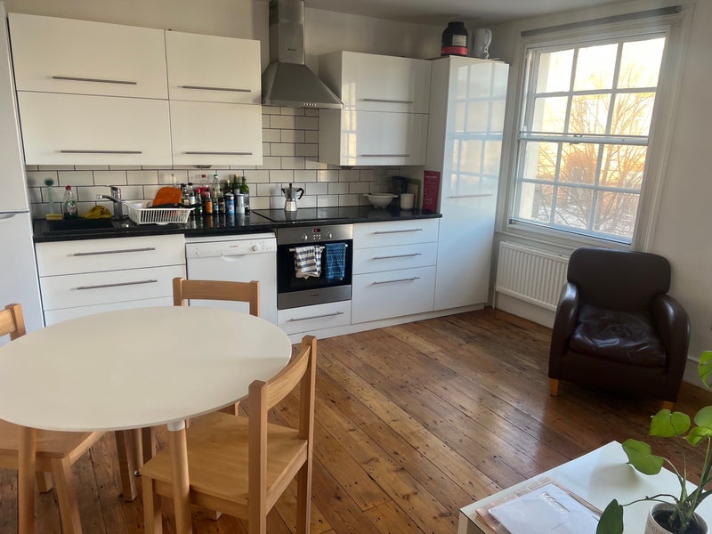A fully furnished and recently renovated 3 double bedroom apartment split over the top 2 floors of a 5 story house in central London . Lots of natural light and double glazing making it warm and quiet. Large kitchen / dining / living room which is a great communal space. There is a washing machine and dryer, as well as all other essential kitchen appliances.