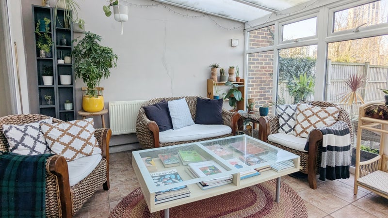 Bright conservatory full of plants