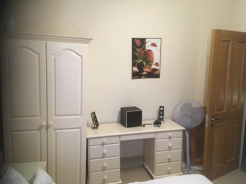 There is also a large wardrobe, desk, and chests of drawers. . There is full fibre broadband internet included.. The first floor bathroom is shared with 2 others and has a bath and power shower.