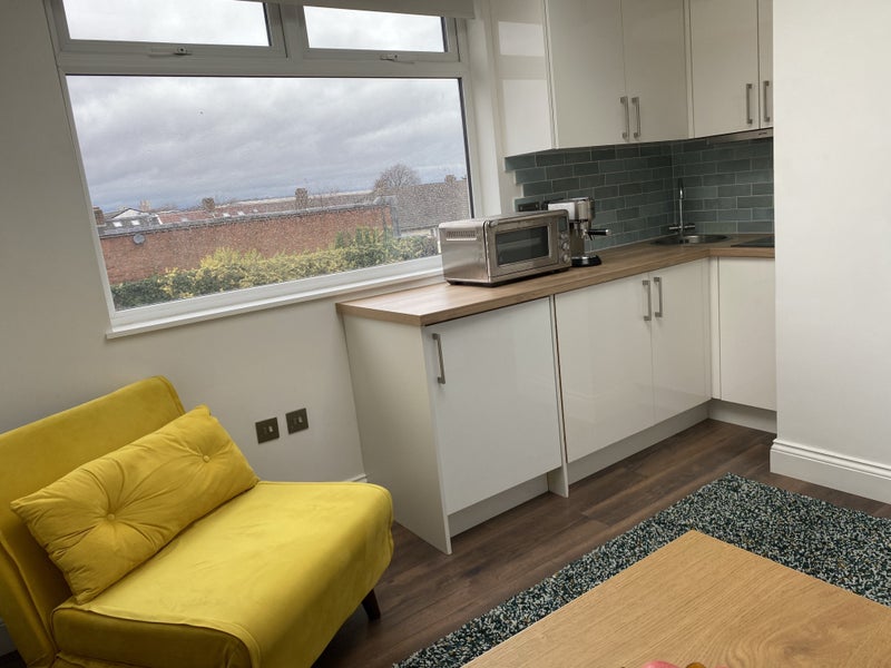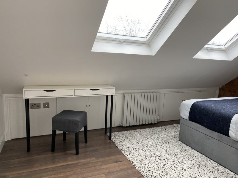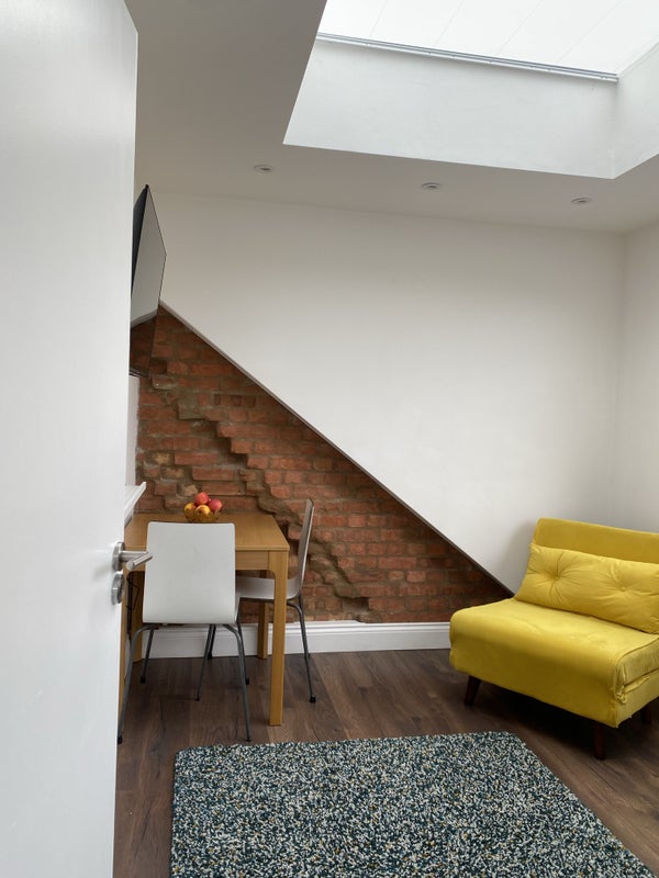 The flat is on the top floor of our home and accessed via a private communal stairway in the house. The accommodation is fully furnished and comprises of 1 x double bedroom, a lounge with a large skylight and window (overlooking gardens), a fully equipped kitchen and top end fully tiled shower room.