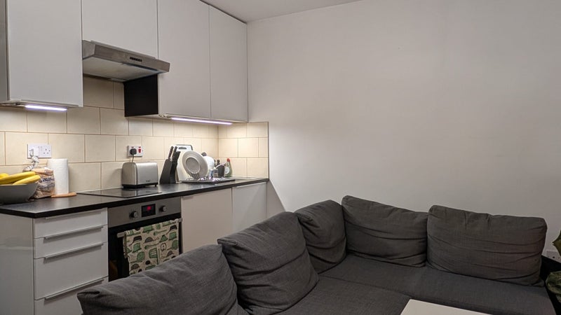 The flat has one bedroom, a shower/en-suite and a kitchen/lounge area.