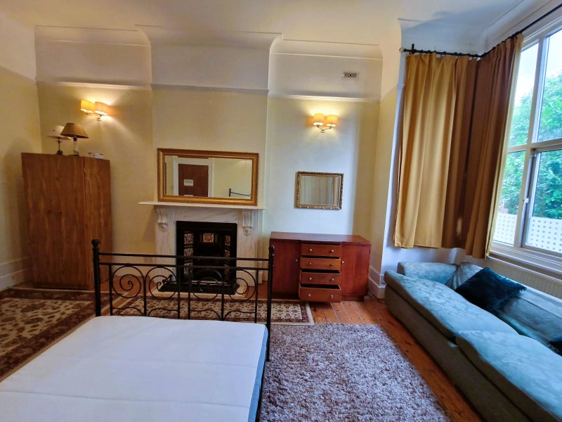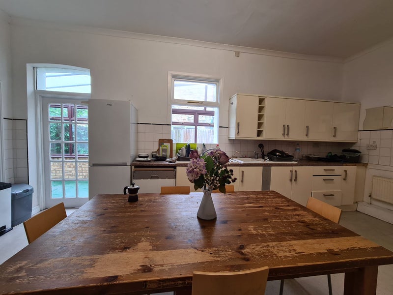 A massive double room is now available on the first floor of a charming Victorian house, featuring very high ceilings, an abundance of natural light, and multiple large windows that create a bright and airy atmosphere.
