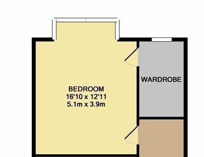The room also boasts a spacious walk-in dressing room with ample built-in storage, making it ideal for anyone who values comfort and organisation.