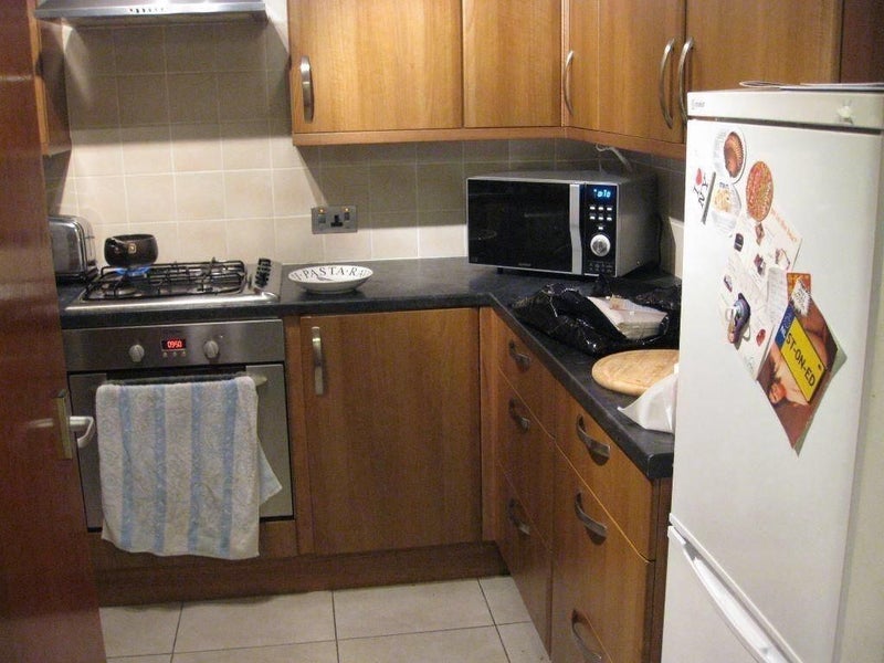 Kitchen with all the usual modern appliances. There is also a separate communal lounge with 2 nice big comfortable sofa's and a huge Sony TV leading onto the garden area, which has a barbecue and a table and chairs.