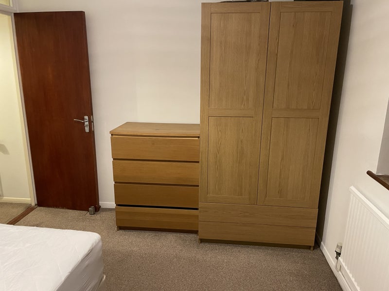 Large double rooms fully furnished with double bed, very large double wardrobe, desk and side table.