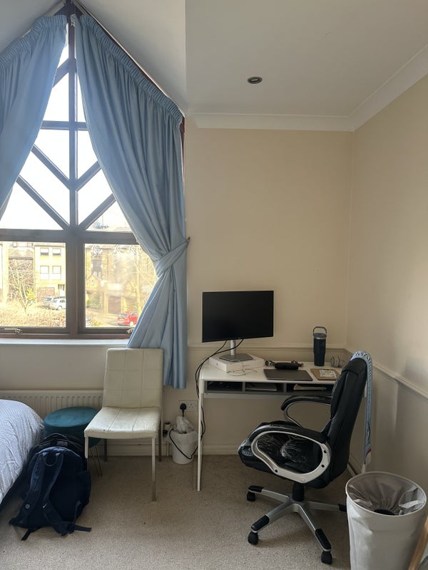 - Double bed, desk + chair