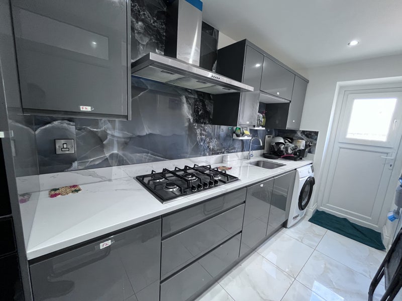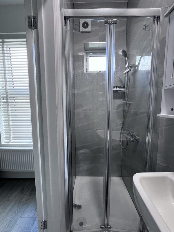 Newly decorated and furnished double room with en-suite is suitable for a working couple/students.