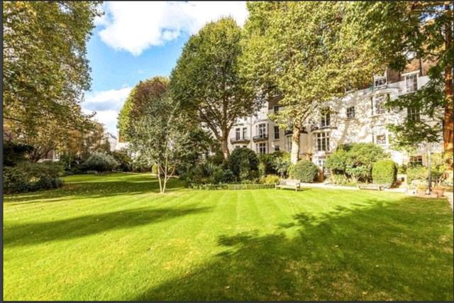 The bedroom looks over Huge communal gardens with 24-hour access.