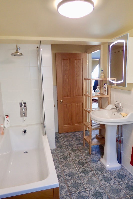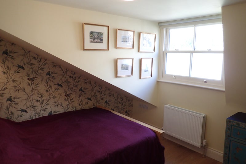 Large single room with double bed. Room is next to bathroom that you have sole use of when in the house. Across the lobby from the bedroom, there's a study with desk space available most evenings.