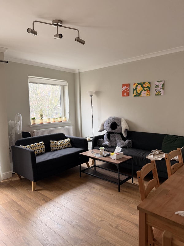 You’ll be sharing the flat with two very lovely roommates, both working professionals. The room is fully furnished with ample storage, and the flat includes a full bathroom plus an additional toilet.