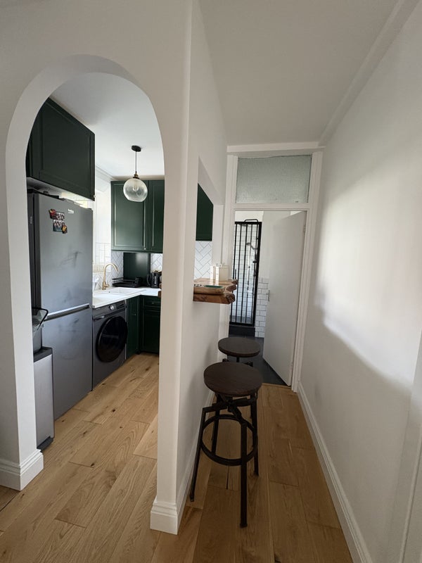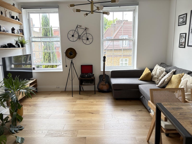 This is a 2 bed flat, stylishly furnished throughout. It boasts 2 double bedrooms that are bright & comfortable, a fully equipped kitchen, a spacious high ceiling living room with a corner sofa-bed along with a lovely industrial styled dining table. This property is perfect for families, business travellers or friends visiting London.