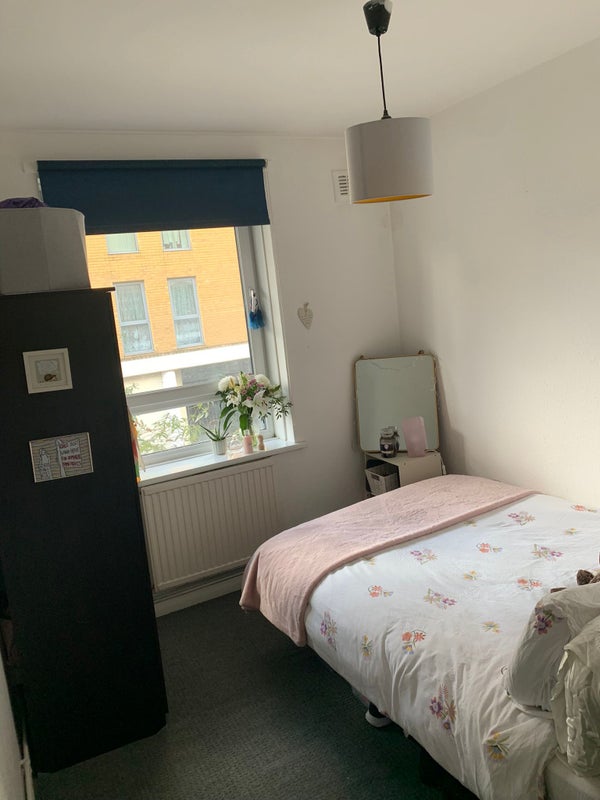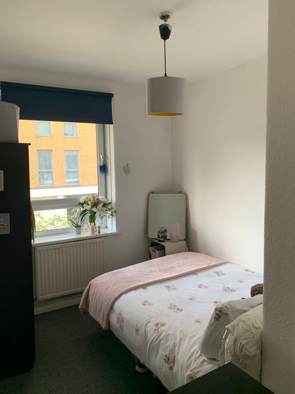 Spacious double room bigger then it looks in the photos). The room comes furnished with a double bed, chest of drawers and wardrobe. Happy to help move around furniture to suit you best!!