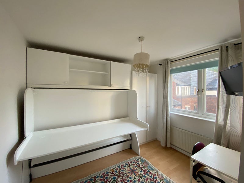 Room 2 contains a foldable study bed which can be put away during the day for access to a large desk. A small desk has also been provided for other use throughout the day. This room comes with an attached bathroom outside which is the same as an en-suite. This is your own bathroom which will not be shared by other occupants. -£925PCM