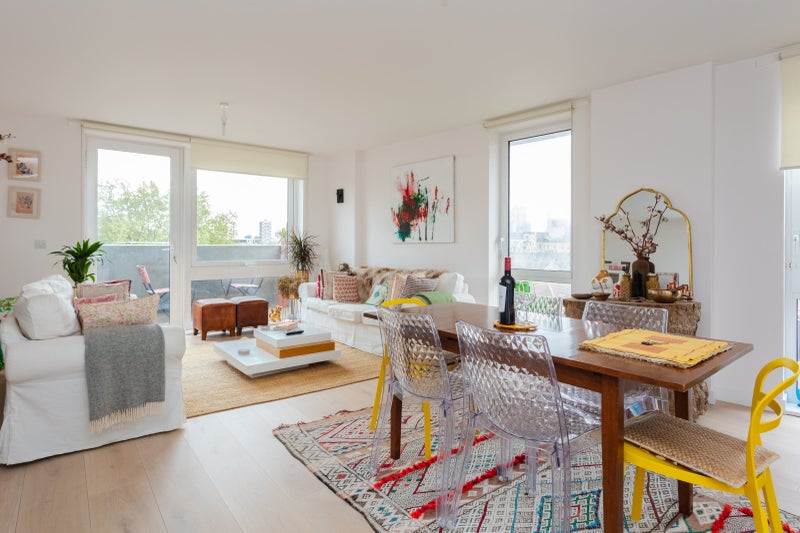 The flat: It is a modern, stylish flat with a lot of light. The living room is open plan, with large South & East facing windows for