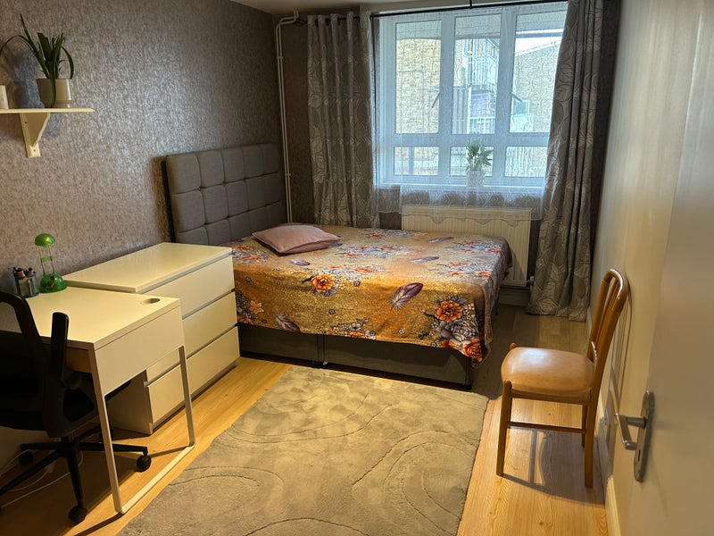 A double room is available in a cosy two bedroom maisonette flat located on a top floor.