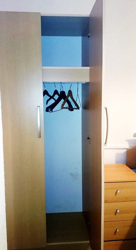 Consists of a large furnished single room with a double bed, wardrobe and desk.