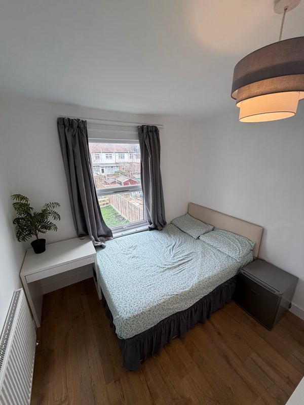 A Double room available in our newly renovated 2 bedroom flat, the room benefits from big size window, facing the garden, 24hours heating, study table and chair, room fridge. And happy to share our food as we cook enough, you won’t be needing to cook if like Pakistani food.