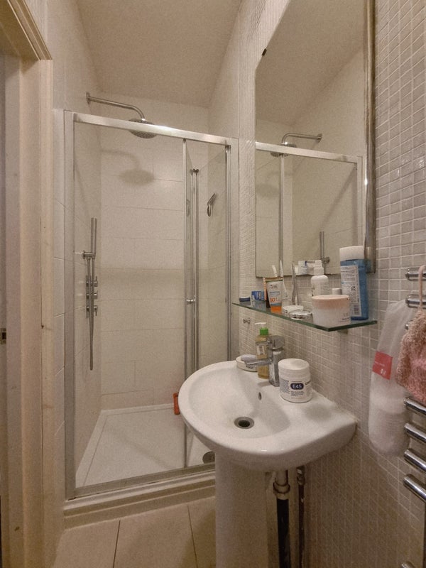 The bedroom is spacious and has lots of natural light. It has an ensuite directly connected to the room, with a sink, shower and toilet. There's enough space for a big desk which is great for working from home. The current tenant can leave her desk and office chair if you'd find them useful.
