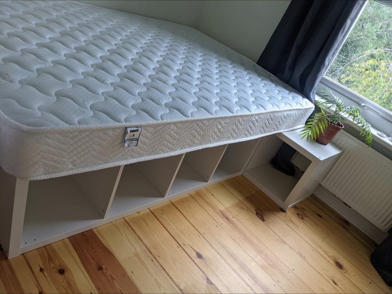 The room is a good-sized double (3.51 x 2.79) it's actually Bedroom Two in the photos so not the circled one. That's a spare room meaning there's no one on your floor. Its furnished with a chest of draws, double clothes rail and a double bed with memory foam topper.