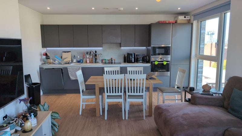 So, a bit about the flat! We have a shared living room, with the comfiest sofa. The surrounding area is fantastic. Upton Park has had a lot of development, including the £1.2m spent renovating the local pub which does a great sunday roast. A lot of new cafes and food places keep popping up and we have a street food stand in the development which has 2 different vendors a week.