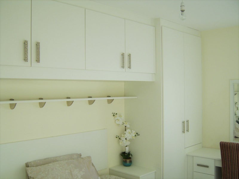 Modern well furnished double room with a lot of storage including a desk and chair to work on.