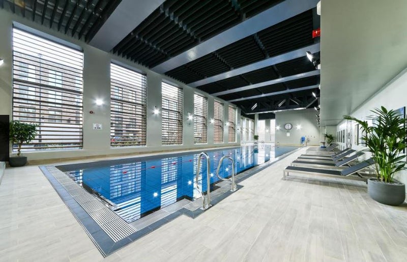 *Gym and Swimming facilities included in rent. Naturally bright 3-bed apartment in Royal Wharf London, located by the River Thames.