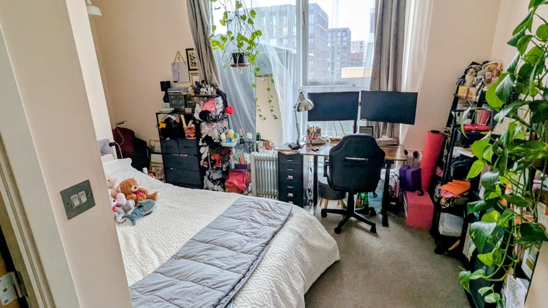 Spacious double room with en-suite shower room and floor-to-ceiling windows, loads of natural light.