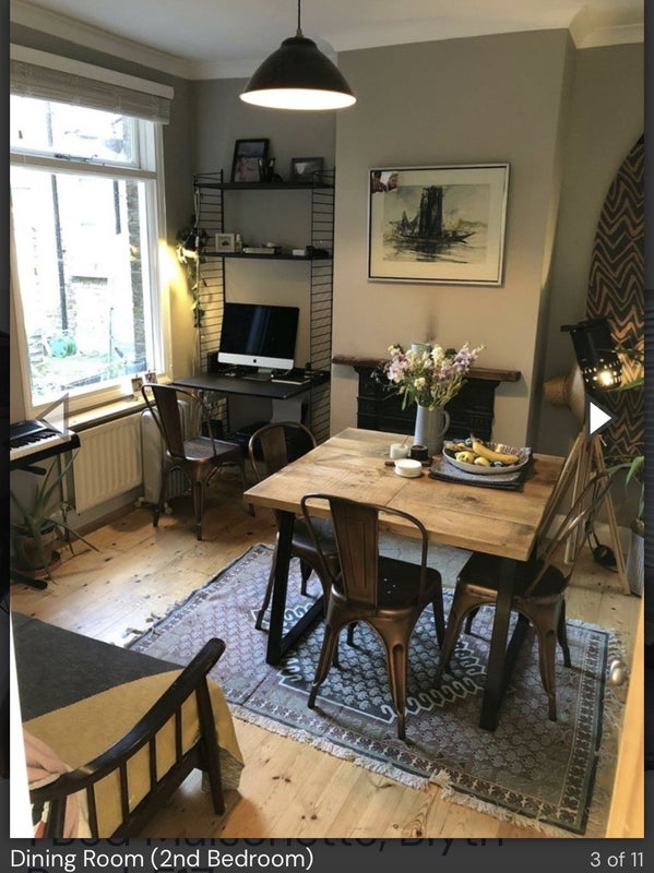 The house is an ex-warner Victorian end terrace ground floor flat. It’s well set up for a couple with everything you could need - lovely living room with huge flat-screen TV and a sofa bed for guests, Sonos surround sound, decent kitchen, dining room and a good sized bathroom with a new powerful shower. The garden has two lovely areas to sit in and a BBQ. It used to be an air B&B so it's furnished and decorated well.
