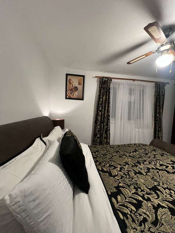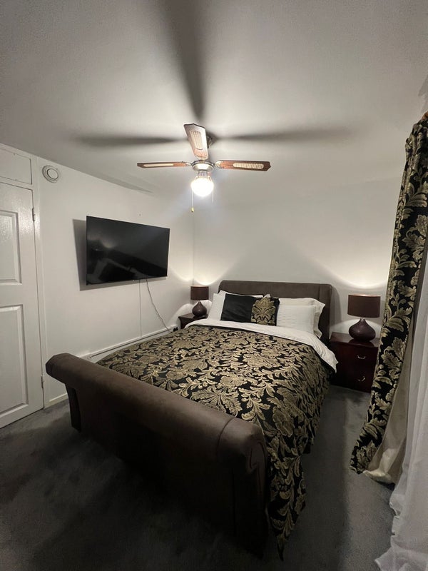 This room is really nice. You don’t need to bring anything because everything is included: a comfortable bed, a 65-inch TV, and a good wardrobe where you can store your clothes. Just bring your own clothes and shoes.