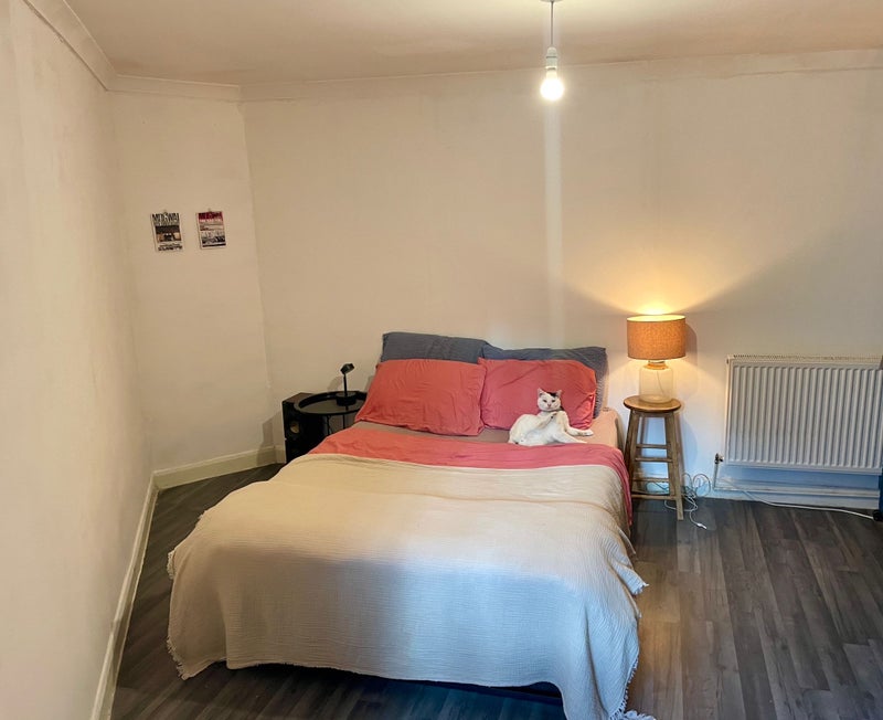 🛏️The room is furnished with a double bed, 2 beside tables, clothing rail and drawers which will be emptied for you. A massive mirror and huge desk ideal for someone who wants to WFH. The room has a window that can be opened, we are far from any high street so it's really quiet despite being in the warehouse area, permanent room on a rolling contract