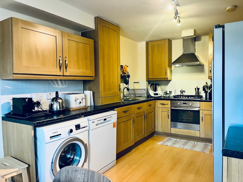 The flat is part of a quiet, safe new-build with nice neighbours. It enjoys plenty of natural light throughout the day and features a balcony that’s perfect for summer. There is also a storage area, dishwasher, and washing machine.