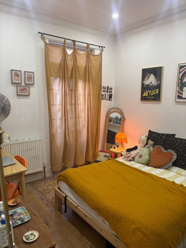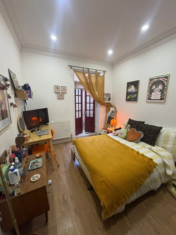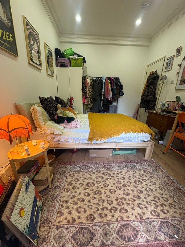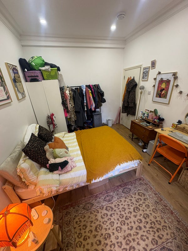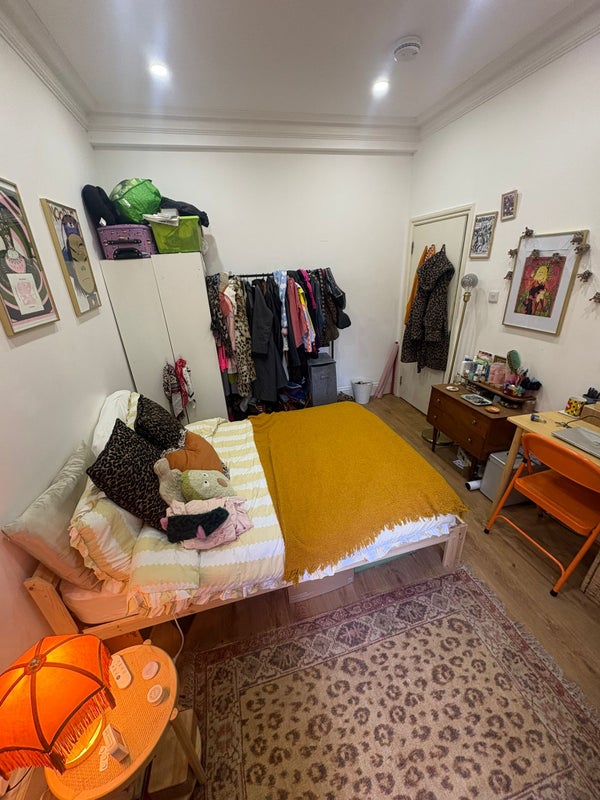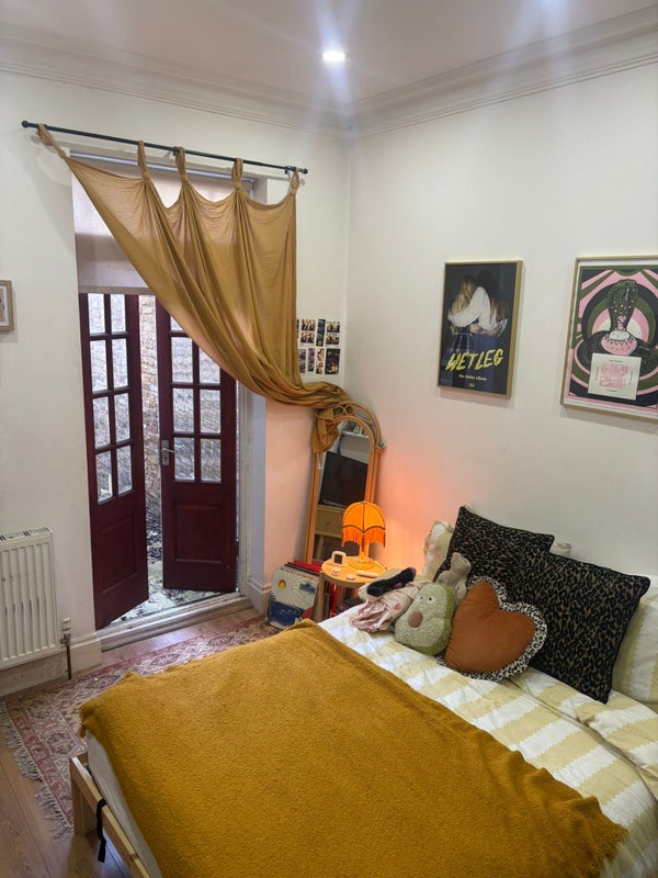 The room is a ground floor room near the kitchen and living room. It has a double bed and wardrobe provided, other furniture in the images is not available but the clothes rail can be borrowed.